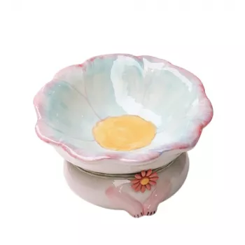 Elevated Ceramic Cat Bowl with Flower Design – Anti-Tip & Neck Protection